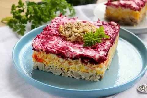 Филе свинины, картофель, лук и морковь жареные, сыр, яйцо, картофель,грецкий орех, майонез