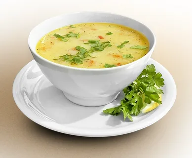Филе цыпленка, картофель, лук, морковь, огурец консервированный, крупа перловая, специи, сметана