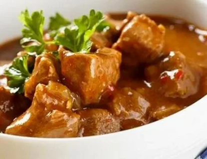 Говядина, лук репка, томат, масло растительное, мука, специи